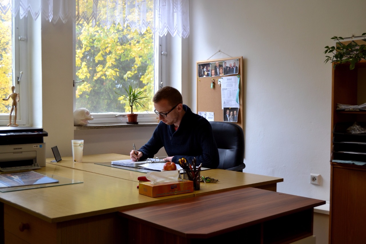 Rejža pracující v nově zrekonstruované kanceláři! Říjen 2016.