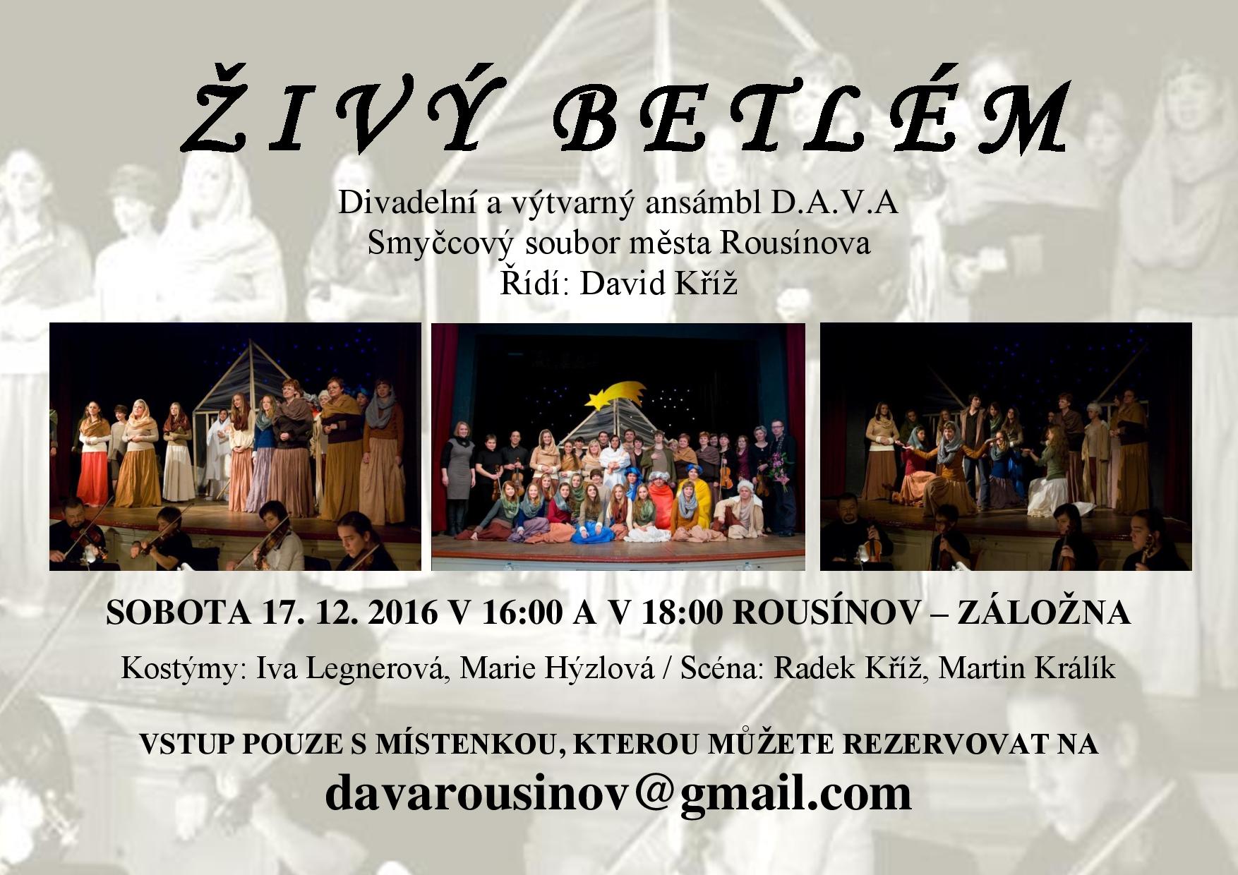 Sobota 17. prosince 2016 v 18h / ŽIVÝ BETLÉM – premiéra / vstupenky